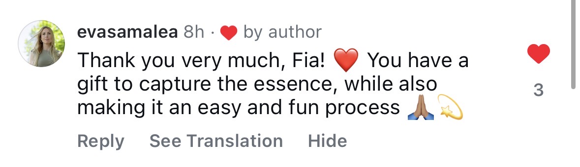 “Honestly I can not say enough great things about working with Fia. I have been putting off building my website for so long because I thought it would be complicated, difficult and just… a lot. Technology is not one of my biggest strength, so I kept postponing it and didn’t not reach out for experts like Fia. Had I known how easy, simple, and fluent the whole process would be, I would have started this way… way sooner. From the very beginning, she made everything so effortless. Fia is super fast with communication, incredibly responsive, and always guiding every step of the way. She has such a beautiful eye for design, offers so many options and somehow makes the process fun and exciting. I am genuinely grateful for her patience, her talent and how she turned what I thought it would be a stressful project (which has been in the past with my previous designers) into smth cool, enjoyable and spuriously easy. My website turned out better than what i imagined and I will always be happy to work with Fia in any of my future projects. If you are hesitating like I was go ahead and work with Fia because it will be a game changer!!”